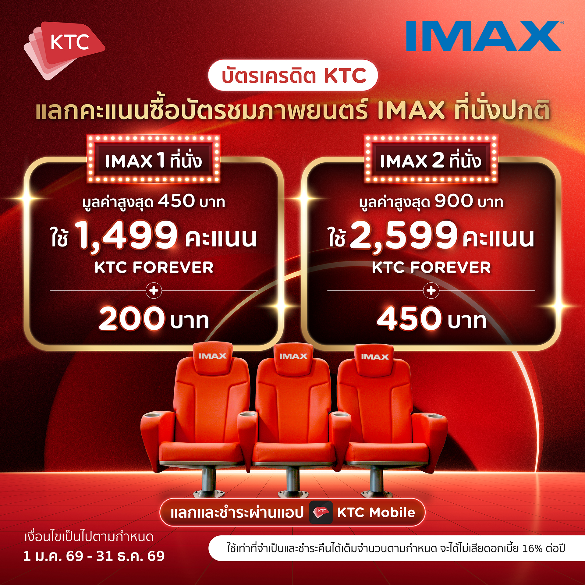 KTC REWARDS ใช้คะแนน + 120 บาท รับบัตรชมภาพยนตร์ IMAX” Y2026