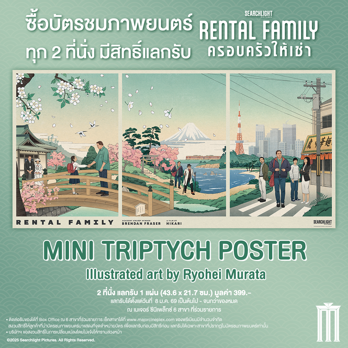 ซื้อบัตรชมภาพยนตร์เรื่อง “RENTAL FAMILY” ทุก 2 ที่นั่ง รับ Triptych Poster ฟรี !